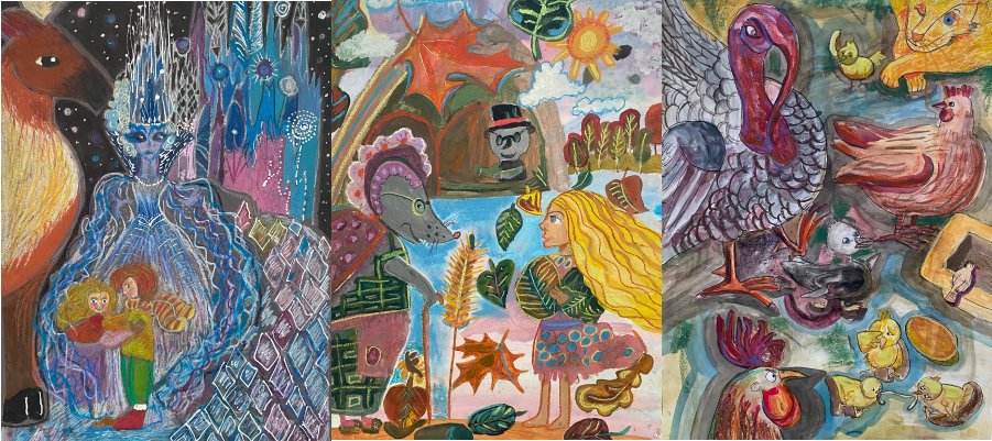Приглашаем и вас погрузиться в эту атмосферу тепла и фантазии, чтобы вновь, как в детстве, почувствовать дыхание настоящей сказки, бережно перенесённой на бумагу нашими юными художниками.