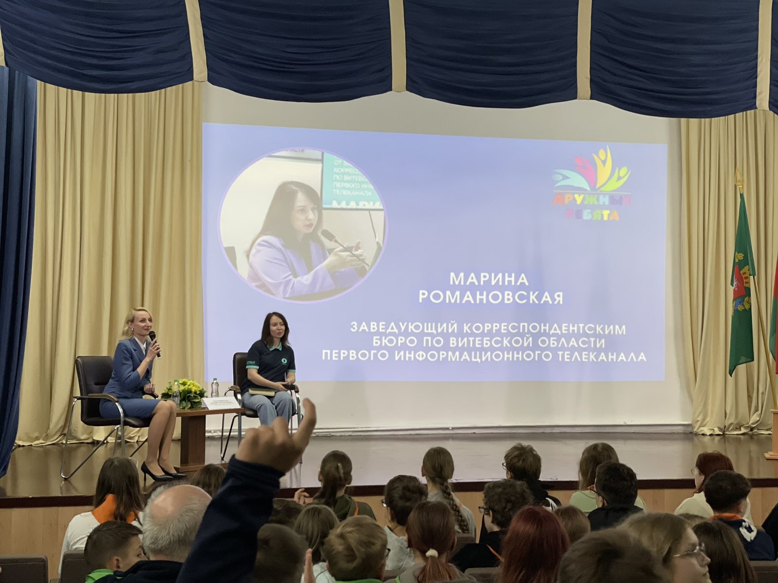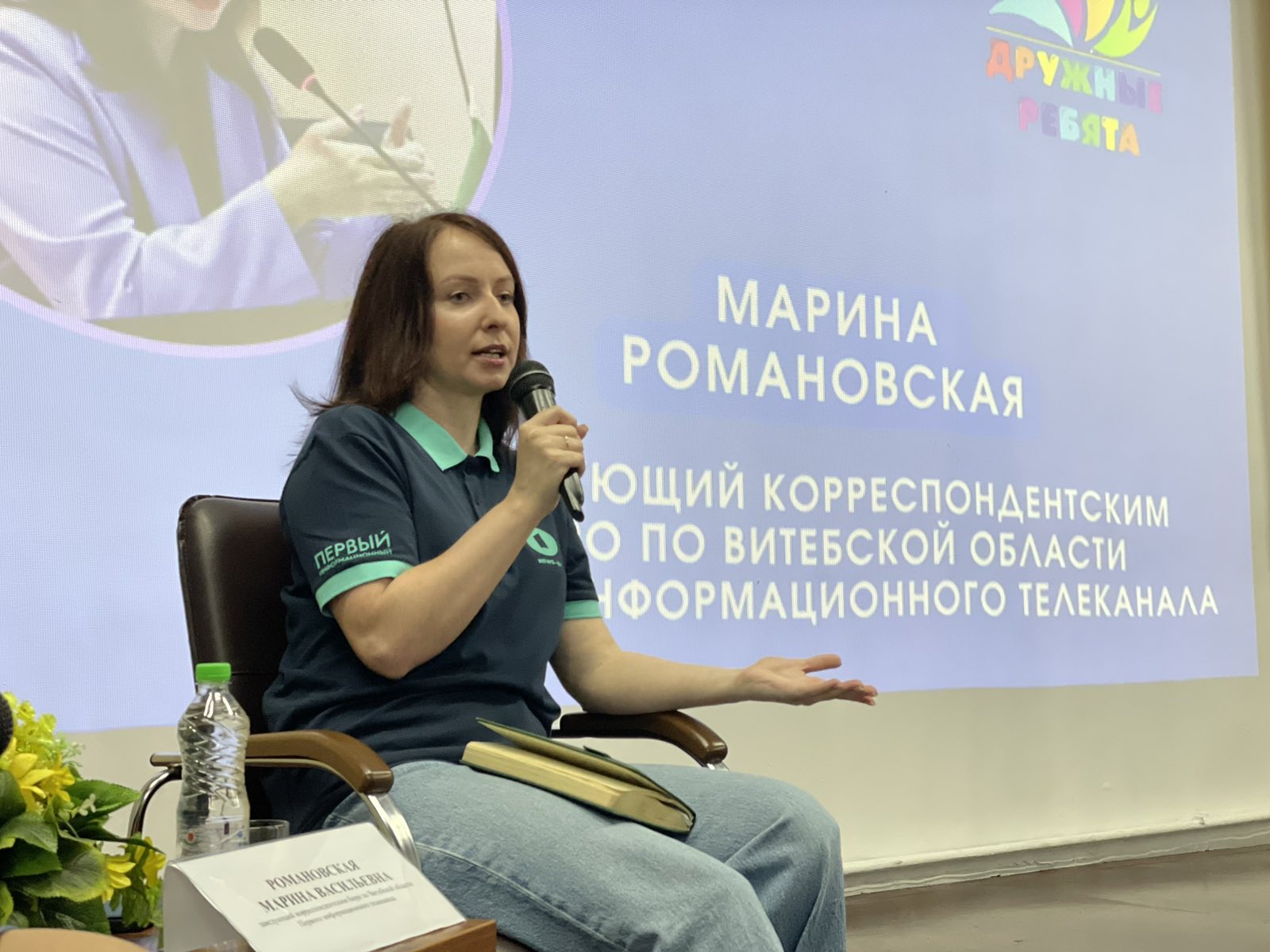 Какими правилами руководствоваться при создании сюжета, как уверенно держаться в кадре, как формировать доверие зрителей к тележурналисту? Об этом и не только рассказала заведующий корреспондентским бюро по Витебской области Первого информационного телеканала Марина Романовская на встрече с ребятами в воспитательно-оздоровительном лагере «Дружные ребята» в рамках информационно-просветительской акции «Шаг к успеху».
