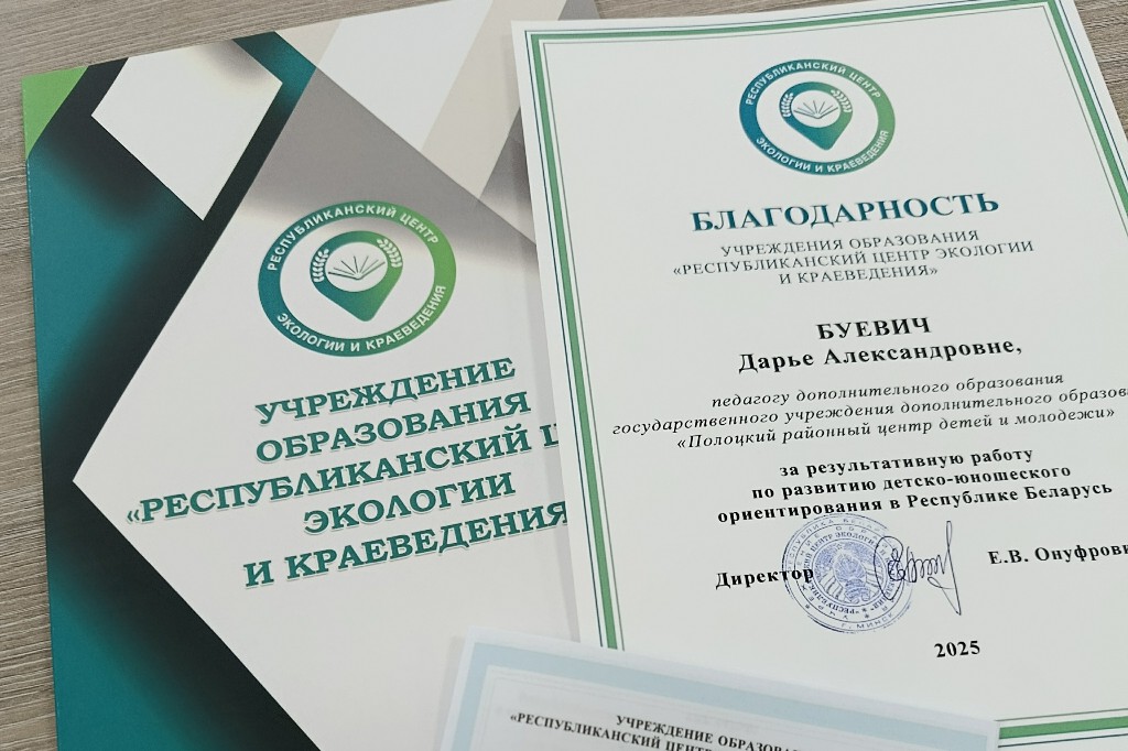 За результативную работу по развитию детско-юношеского ориентирования в Республике Беларусь объявлена благодарность Буевич Дарье Александровне, педагогу дополнительного образования ГУДО «Полоцкий районный центр детей и молодежи».