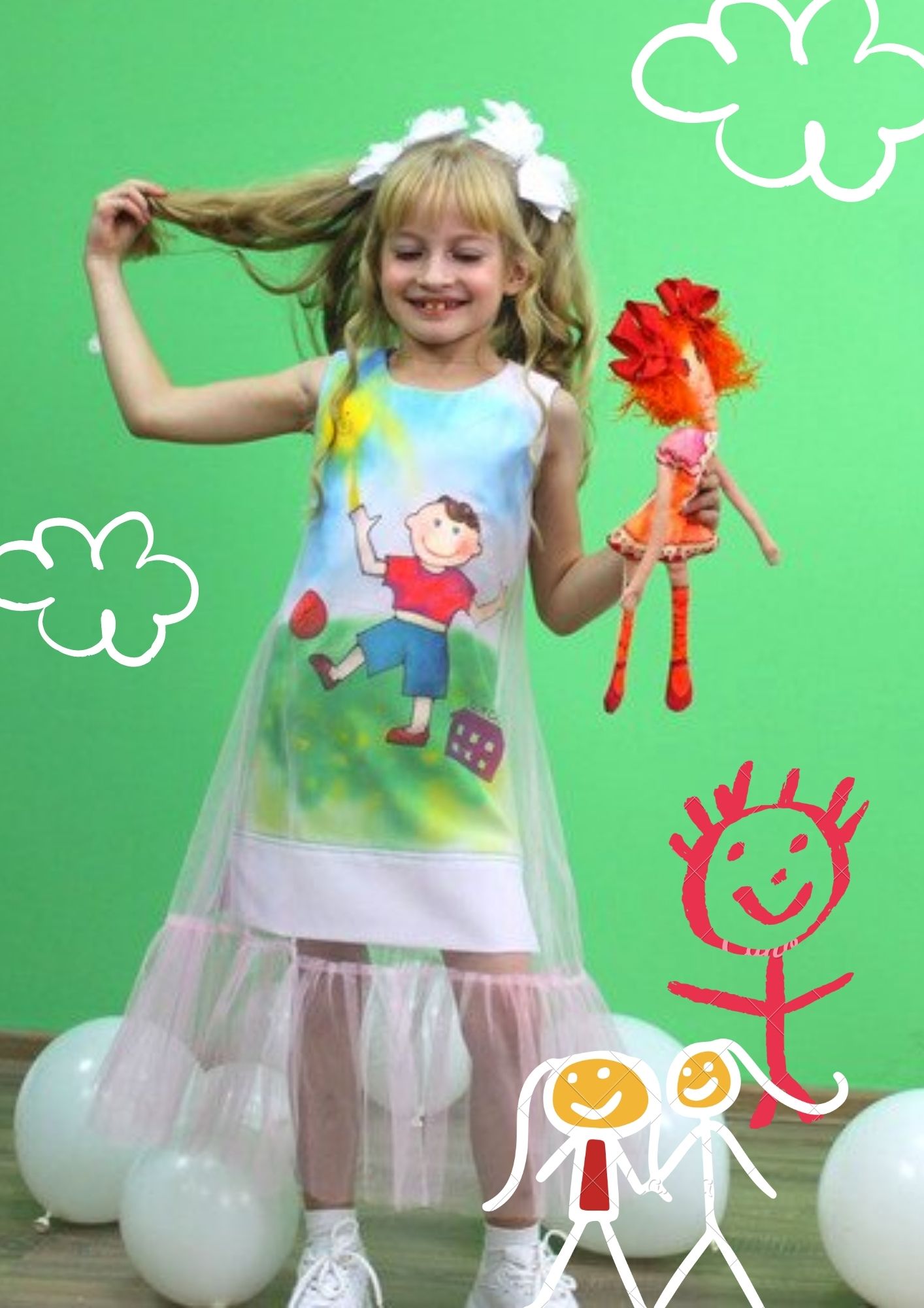 У детей обычно не спрашивают, в чем бы они хотели ходить в школу, да и вообще взрослые советуются с ними редко. Именно поэтому творческая команда педагогов и учащихся объединений по интересам: «Батик», «Куколка», «Изостудия», вдохновившись детскими рассказами о том, какой на их взгляд должна быть форма, разработала линию школьных нарядов для первоклассников «Школьные фрески». Чтобы форма не навевала скуку и давала простор для творчества, а детство не исчезало с первых школьных дней, наша изобретательная группа дизайнеров решила наполнить коллекцию яркими красками, праздничным настроением и сохранить в ней все ассоциации с детством: любимые мама и папа, веселые приключения и друзья, сладости и игрушки…