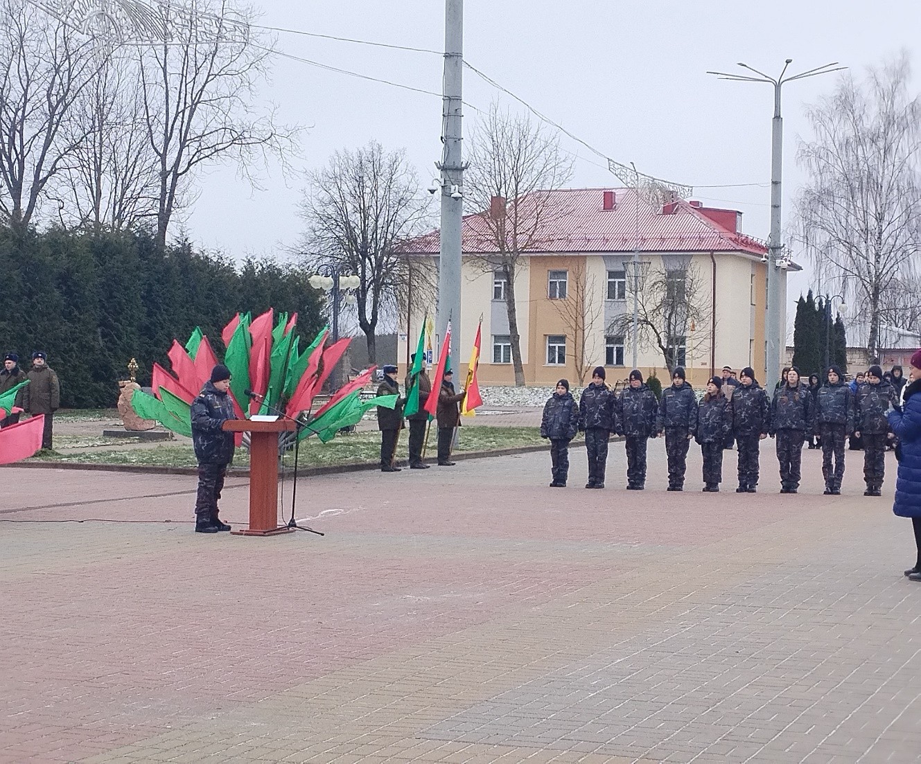 24 декабря на мемориальном комплексе «Бессмертие» в г.Городке состоялся торжественный митинг, на котором были возложены цветы и венки. У мемориала, посвященного погибшим защитникам Родины, состоялась символичная церемония: ребят приняли в ряды военно-патриотического клуба «Отечество». Также начальник Городокского РОВД А.Шуминский вручил удостоверения новым членам клуба.